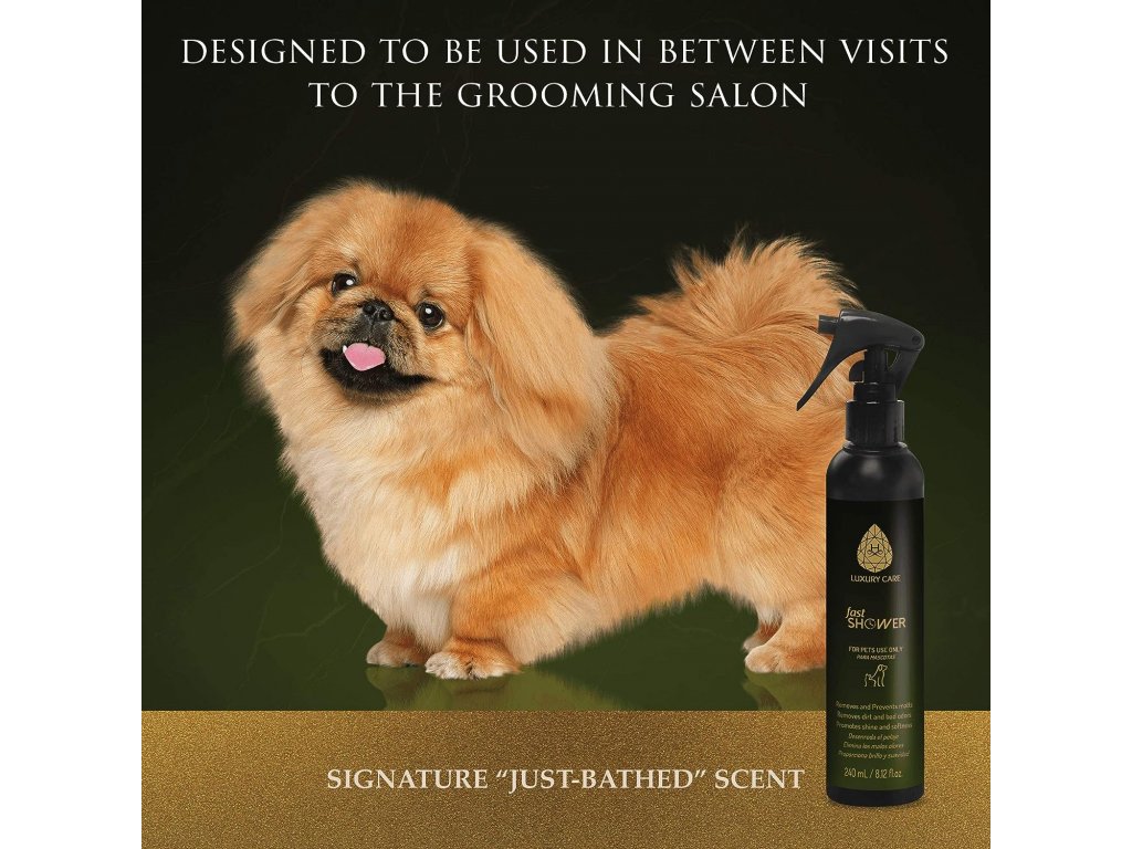 Náš život je často velmi náročný a někdy máme na koupel nebo sprchu málo času. Ideálním řešením, jak rychle osvěžit vlasy, je suchý šampon. Tento sprej je ekvivalentem pro vašeho domácího mazlíčka. Díky exkluzivní řadě Luxury Care můžete prodloužit krásné výsledky vytvořené v salonu a používat profesionální produkty doma!