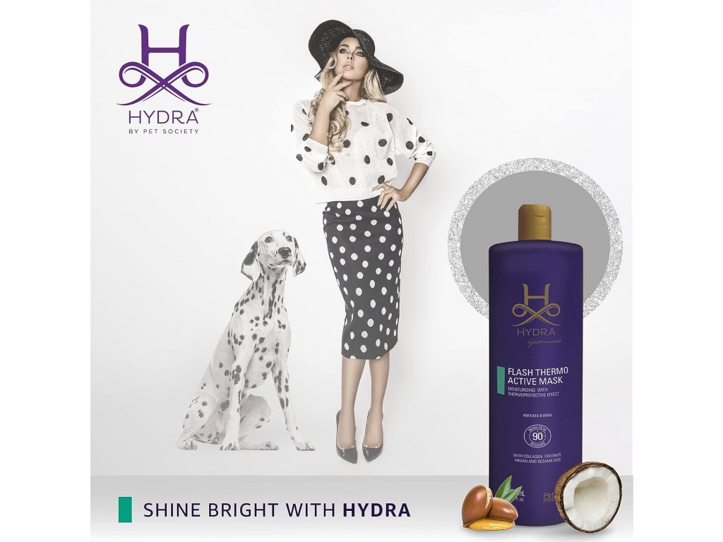 Po vykoupání mazlíčka nejvhodnějším šamponem Hydra a důkladném opláchnutí naneste na srst masku Hydra Flash Thermo Active a důkladně ji vmasírujte. Masku nechte působit 90 sekund a poté ji zcela opláchněte.