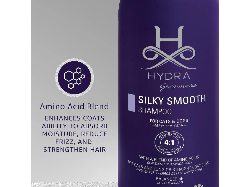 Dlouhá, hedvábná srst se snadno zacuchá a potřebuje dostatečnou hydrataci, aby zůstala krásná a zdravá. Vhodná péče je proto nezbytná. Šampon Hydra Silky Smooth byl vyvinut speciálně pro psy a kočky s dlouhou a rovnou srstí.