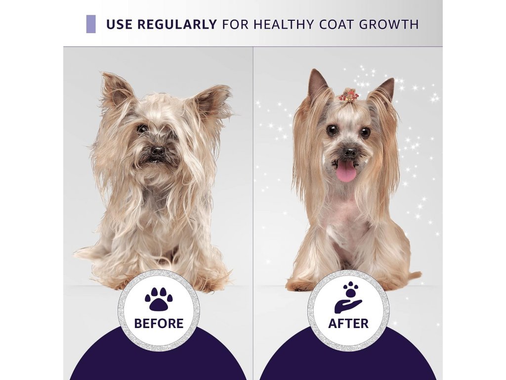 Vhodný pro psy a kočky s dlouhou a rovnou srstí, pro hedvábnou srst a pro dvojitou srst, která potřebuje vyživit, hydratovat a regenerovat.