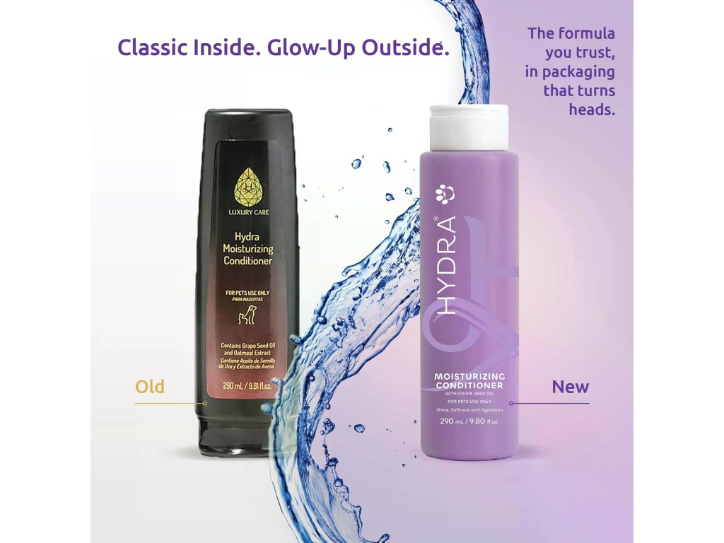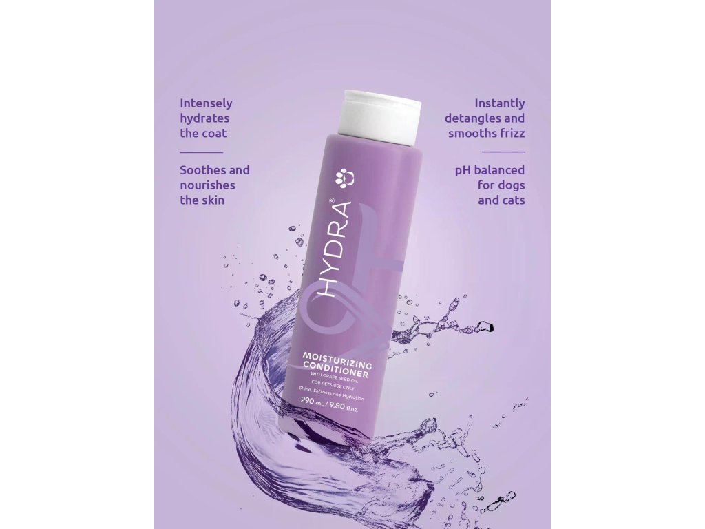 Hydra Moisturizing Conditioner je bohatý kondicionér s ovesným extraktem a výživným olejem z hroznových jadérek. Jeho vysoce výživná textura se snadno vstřebává do srsti, redukuje krepatění, zlepšuje lesk a usnadňuje rozčesávání.