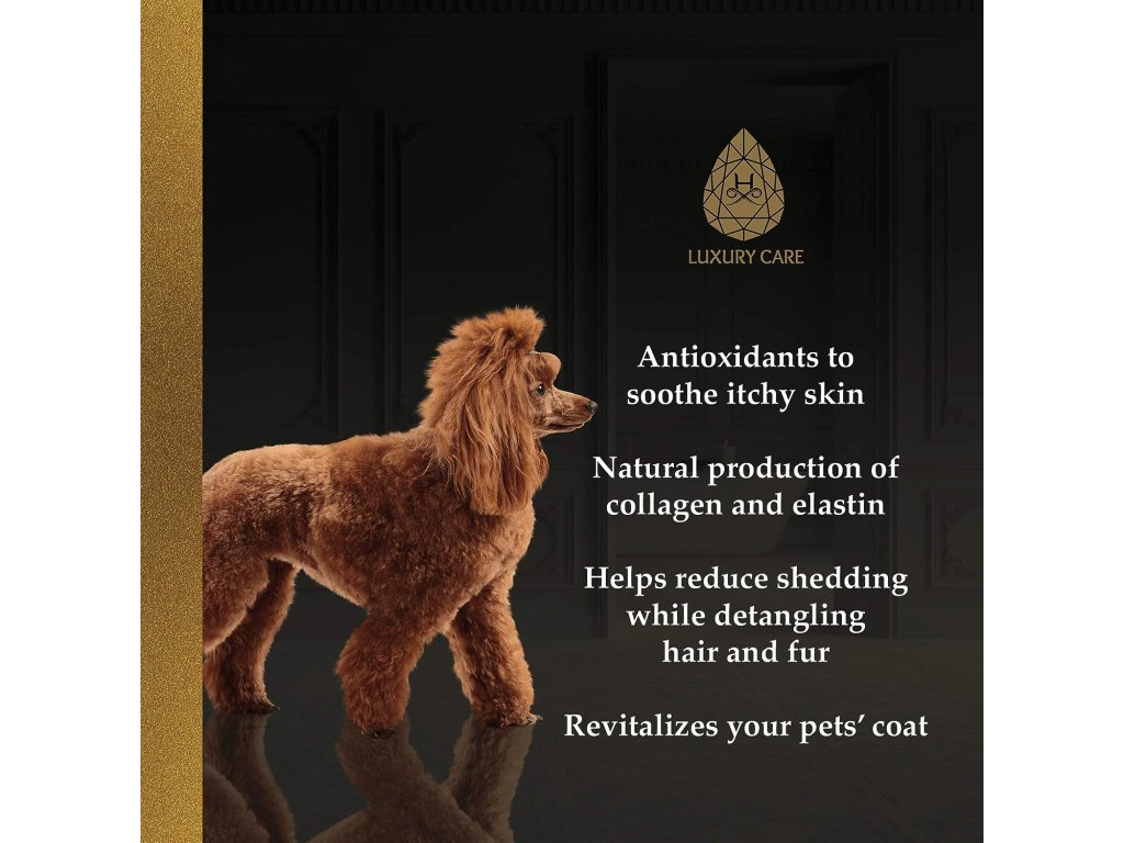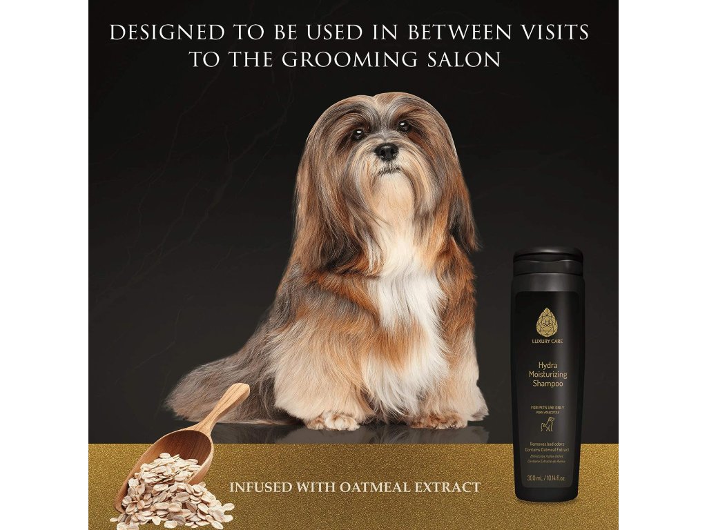 Hydra Luxury Care Hydratační šampon obsahuje hydratační výtažek z ovesných vloček, který jemně čistí a hydratuje srst a pokožku vašeho domácího mazlíčka.