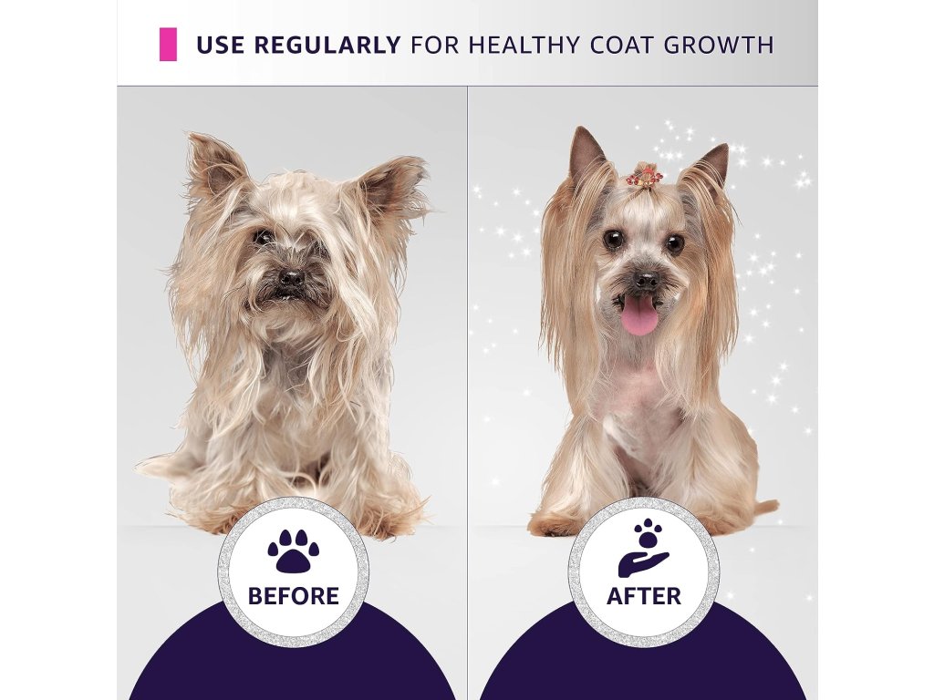 ŠAMPON ODSTRAŇUJÍCÍ ZÁPACH: Tento šampon pro domácí mazlíčky otevírá vlasové kutikuly, čímž usnadňuje odstraňování nečistot. Podporuje hloubkové čištění srsti a může dokonce pomoci prodloužit účinky koupele. Jeho salónní složky, jako je výtažek z ovesných vloček, pomáhají osvěžit pokožku.